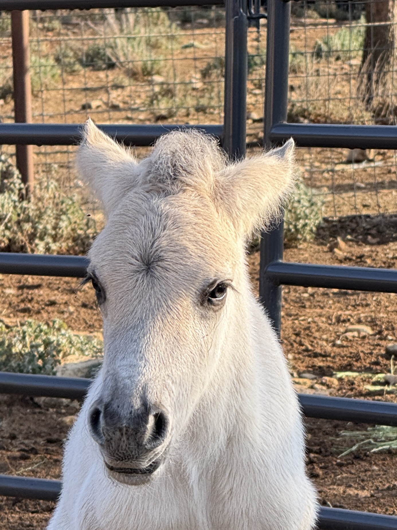 Landsdrop Halo is a 2025 gray dun colt. He is well-muscled even as a foal and should be a moderate to drafty style Fjord when he’s mature. He has a bold, friendly disposition and wants to be wherever people are.